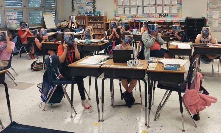 Our Oakland Park Kiwanis club provides dictionaries for third grade students in Oakland Park. These are classroom pictures from Floranada Elementary School where the third grade students received their dictionaries today. Because of privacy policies, each student covered their face with their new dictionary. Students loved the dictionaries. This project was led by our own Harvey Ross. Thank you, Harvey. In addition, our weekend food volunteers helped label and deliver the dictionaries to the schools. Thank you!