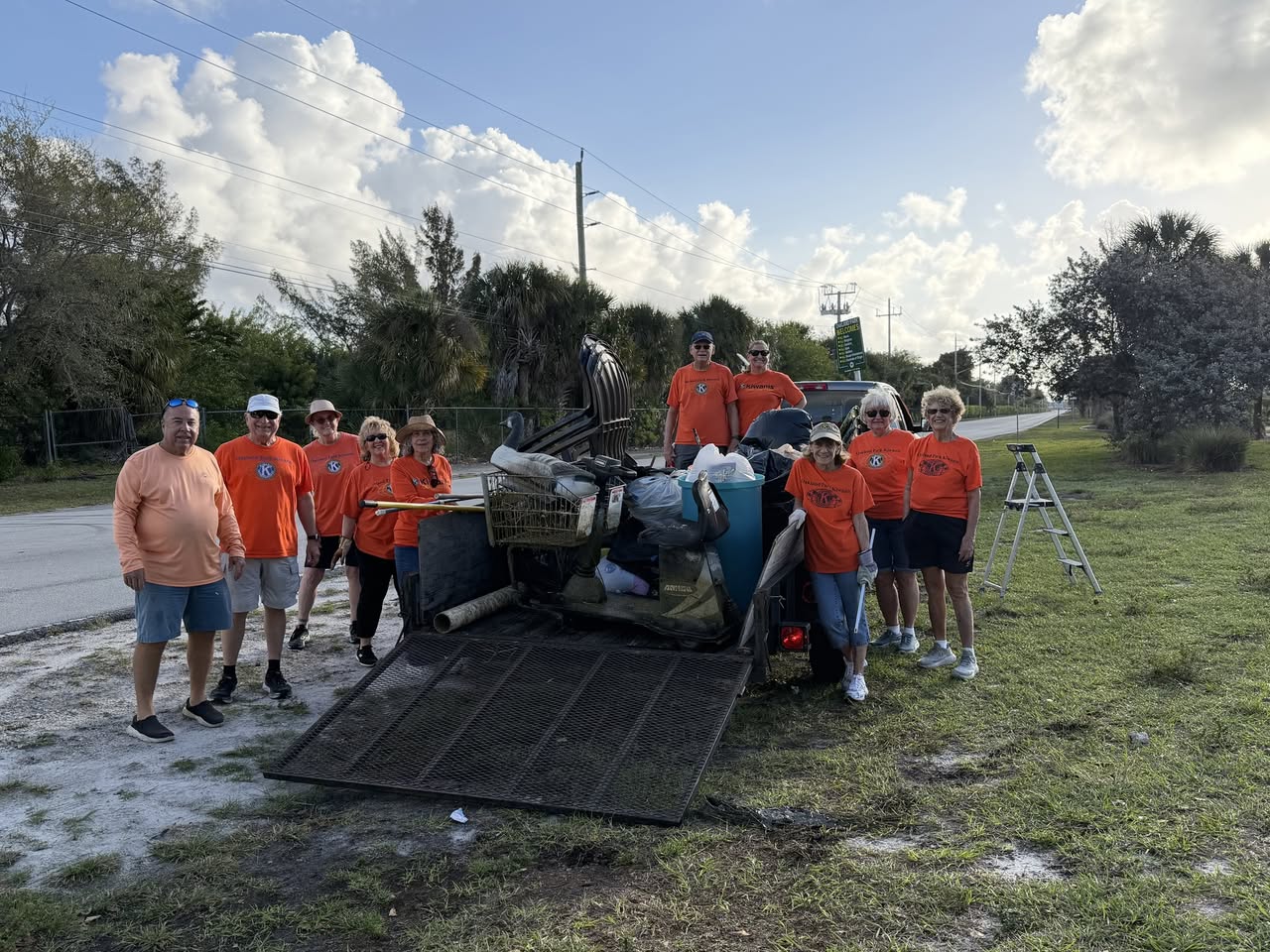Today marked Broward County Water Clean-up Day, an event dedicated to preserving the cleanliness and beauty of our local waterways. Members of the Oakland Park Kiwanis came together with enthusiasm and commitment, arriving early to participate in this vital community effort. Our members picked up 800 pounds of trash. We collected seven plastic adirondeck chairs and a motorized shopping cart! Great work by our incredible members!